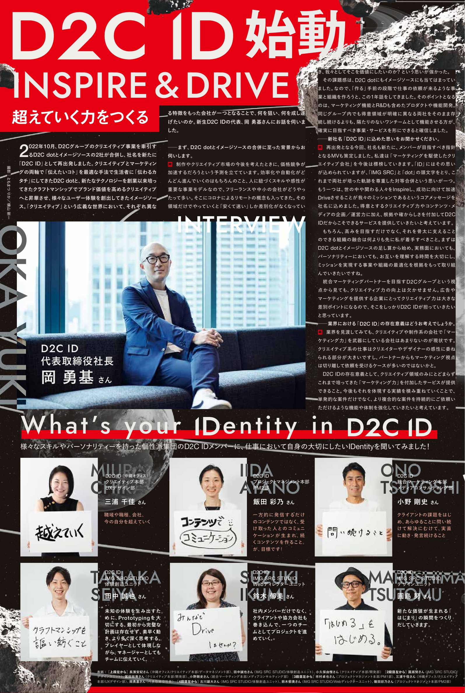 - 巻頭インタビュー:D2C ID始動 -INSPIRE & DRIVE-超えていく力をつくる D2C ID 代表取締役社長 岡勇基