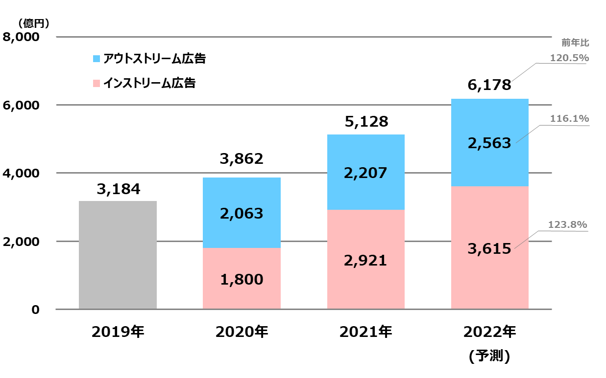 ~ビデオ(動画)広告は、2022年には6,178億円まで拡大する見込み~