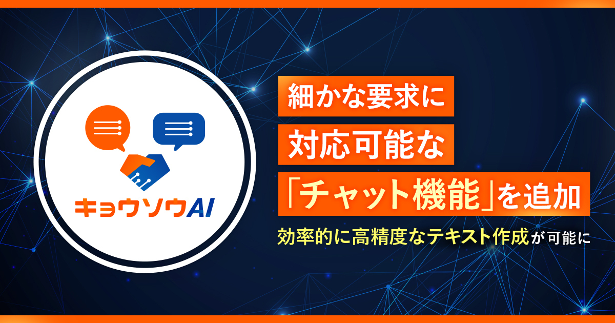 「キョウソウAI」利用者の細かな要求に対応可能な「チャット機能」を追加 効率的に高精度なテキスト作成が可能に