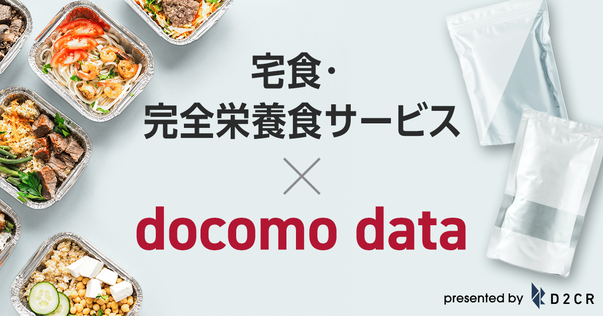 株式会社D2C R(本社:東京都港区、代表取締役社長:豊永 雅史、以下「D2C R」)は、株式会社D2C(本社:東京都港区、代表取締役社長:高田 了、以下「D2C」)が、株式会社NTTドコモ(以下「ドコモ」)から提供を受けている第三者提供に同意されたユーザーデータ(広告識別子・属性情報・位置情報・行動履歴など)を活用し、近年成長を続ける「食品宅配・完全栄養食サービス」の事業者様向けにドコモデータを用いた広告メニューの提供を開始いたします。