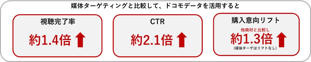 媒体ターゲティングと比較し、ドコモデータを活用した配信は、以下の実績が出ております。