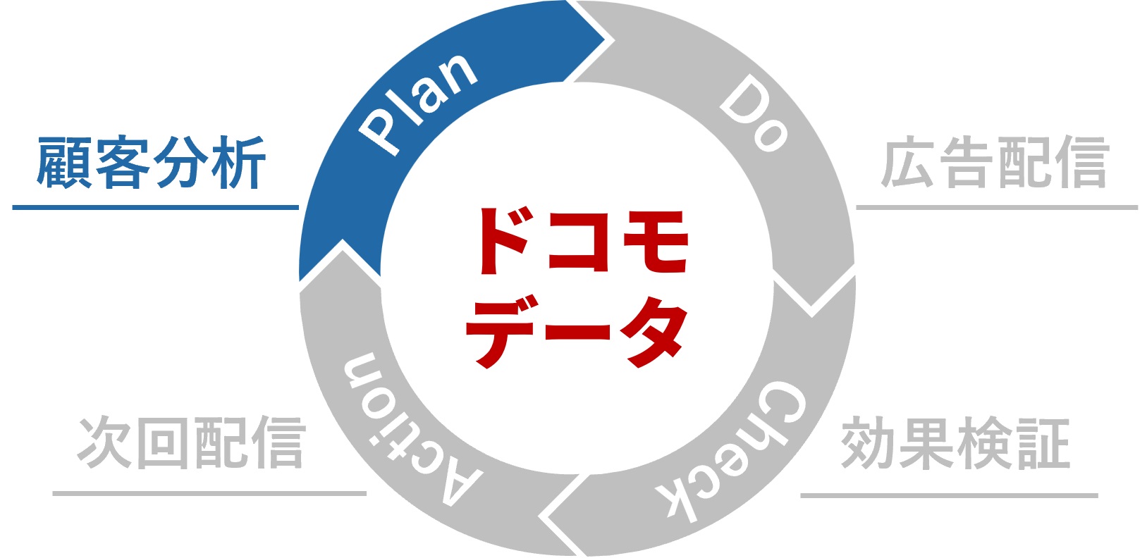 ・ドコモデータの分析によって広告配信前の0次分析や、広告配信後のセグメント調査も出来るため、広告配信のPDCAをより効率的に。