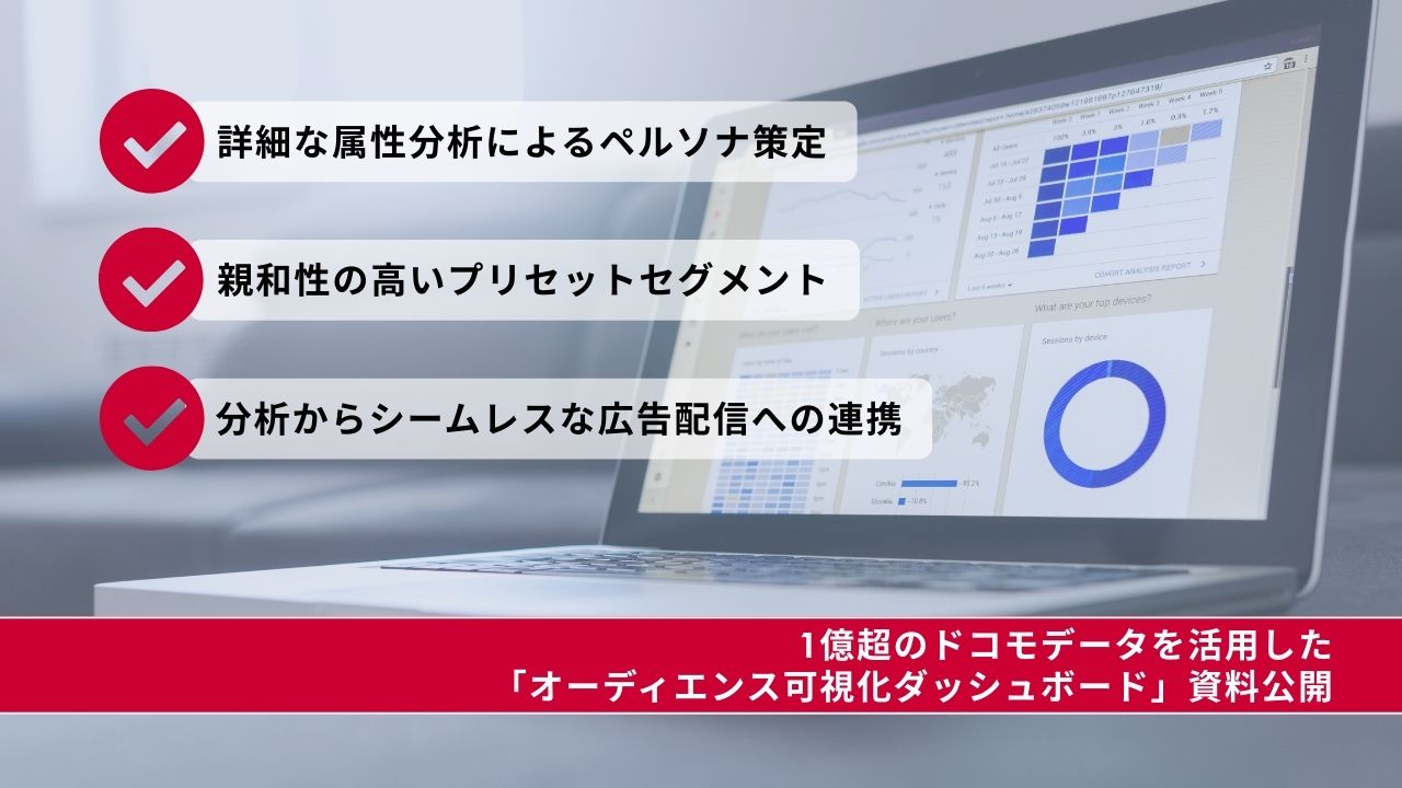 株式会社 D2C(本社:東京都港区、代表取締役社長:岡 勇基、以下D2C)は、株式会社NTTドコモ(以下ドコモ)が保有するデータを活用した広告ソリューション「オーディエンス可視化ダッシュボード」の解説資料を公開いたしました。