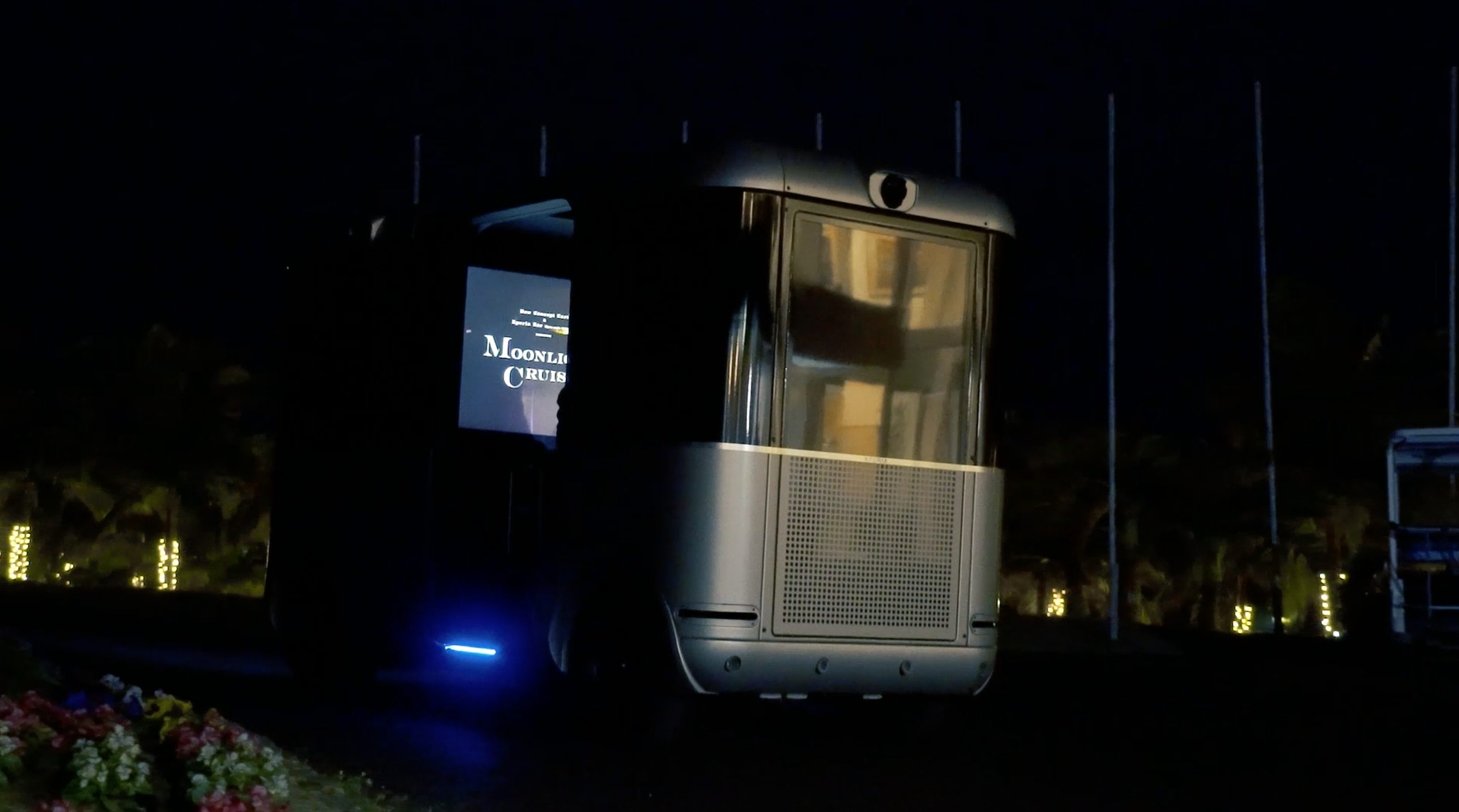 MOONLIGHT CRUISEはソニーのNew Concept Cart(ニューコンセプトカート)SC-1を利用して、夜の使われていないゴルフ場のエンターテイメントサービスの可能性を探る実証実験。乗員は車両をコントロールすることなく、超高感度なイメージセンサーが車内の高解像度ディスプレイに映し出す夜間の走行シーンをベースに、映像と音声の重畳によるエンタテインメントコンテンツを楽しめる。さらに、ユーザーの感覚を刺激する仕掛けを用意しており、星空のもと、昼間には体験できないカヌチャの自然や、動物の生態を感じることのできるツアーとなっている。