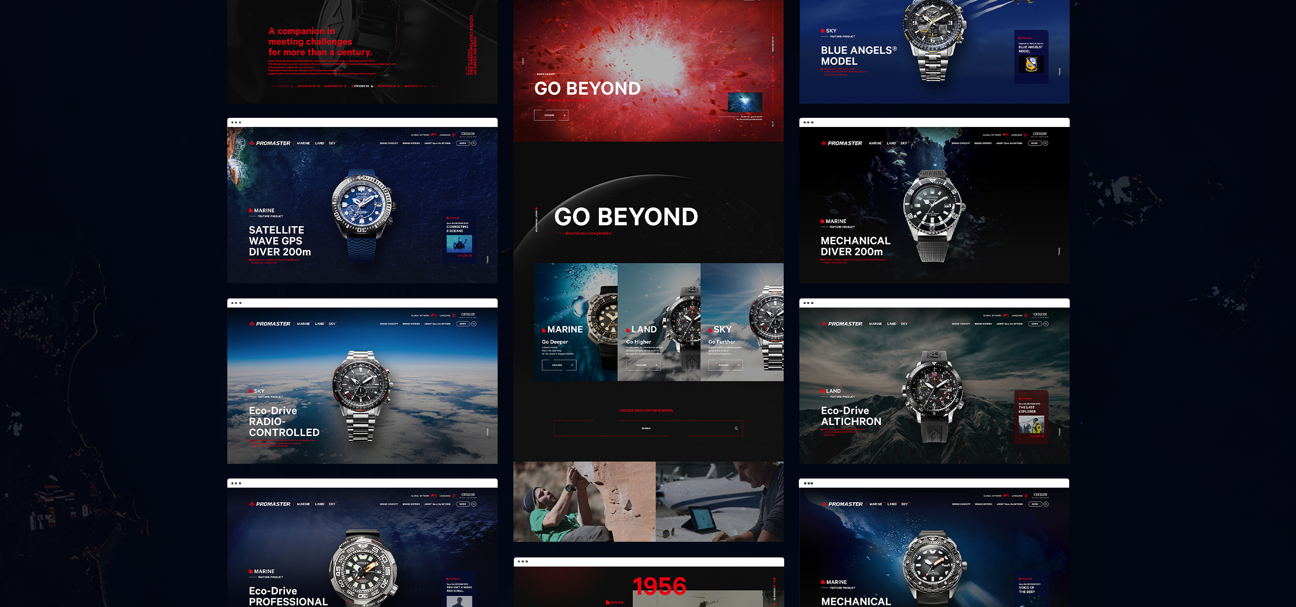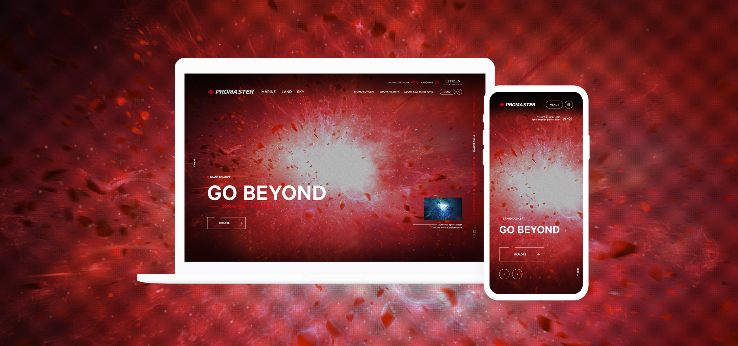 「PROMASTER(プロマスター)」は、CITIZENがグローバルに展開するスポーツウオッチブランドです。1989年の誕生以来、 MARINE(海・ダイバーズウオッチ)、LAND(陸・フィールドウオッチ)、SKY(空・パイロットウオッチ)の3つのフィールドで、世界中の冒険者達とともに限界を超えた挑戦をし続けています。 「PROMASTER(プロマスター)」のブランドサイト・リニューアルにあたり、コミュニケーション設計の見直しなどの全体再設計や情報整理、全8ヶ国語に及ぶサイトの情報設計からデザインビジュアル制作、フロントエンド実装まで、クリエイティブワーク全般をイメージソースで担当させていただきました。
