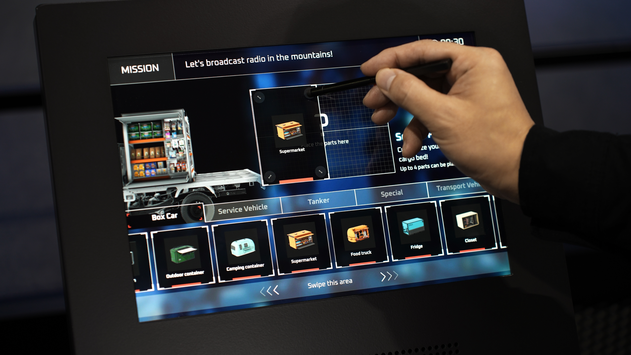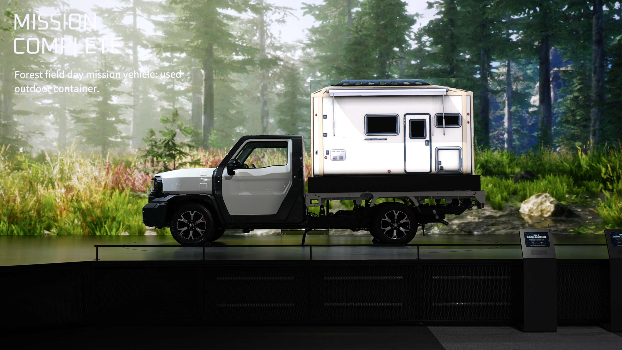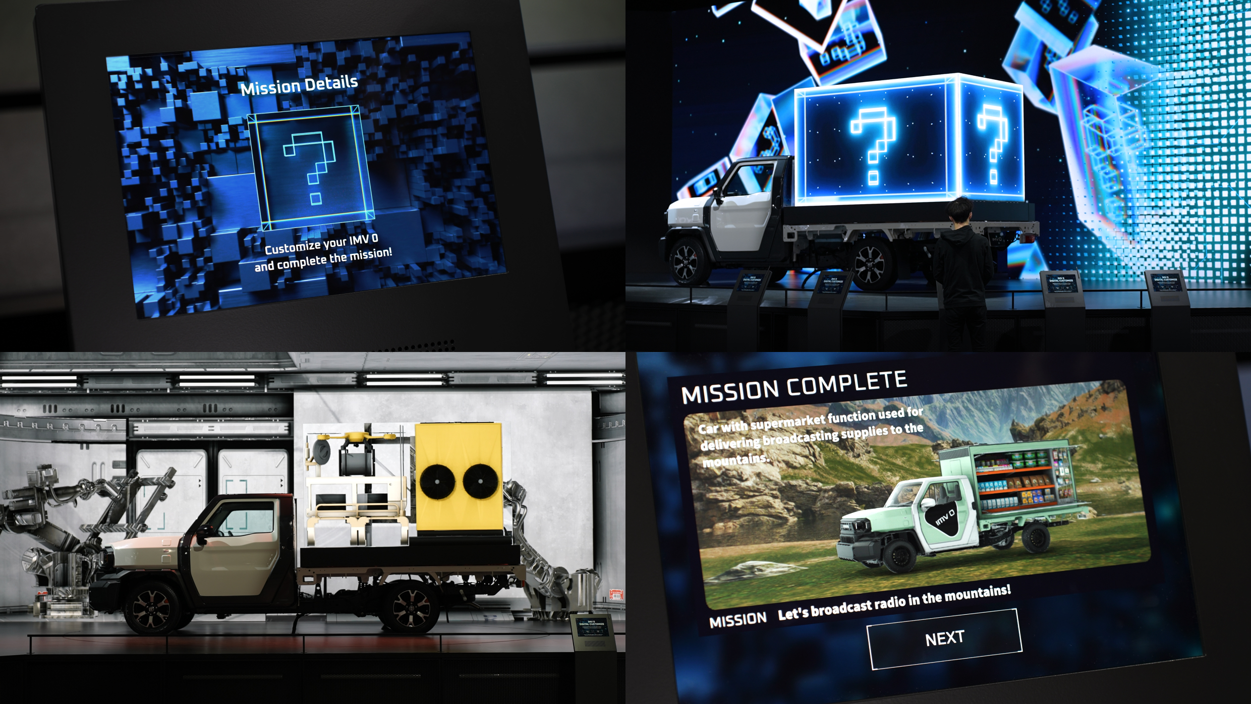 TOYOTA BOOTH内で体験できるIMV 0 DIGITAL CUSTOMIZEは、お客様がIMV 0をカスタマイズし、過酷な環境や、⾝近な環境で起こる課題を自由なアイデアで解決していく参加型コンテンツとして、D2C IDが開発を担当しました。