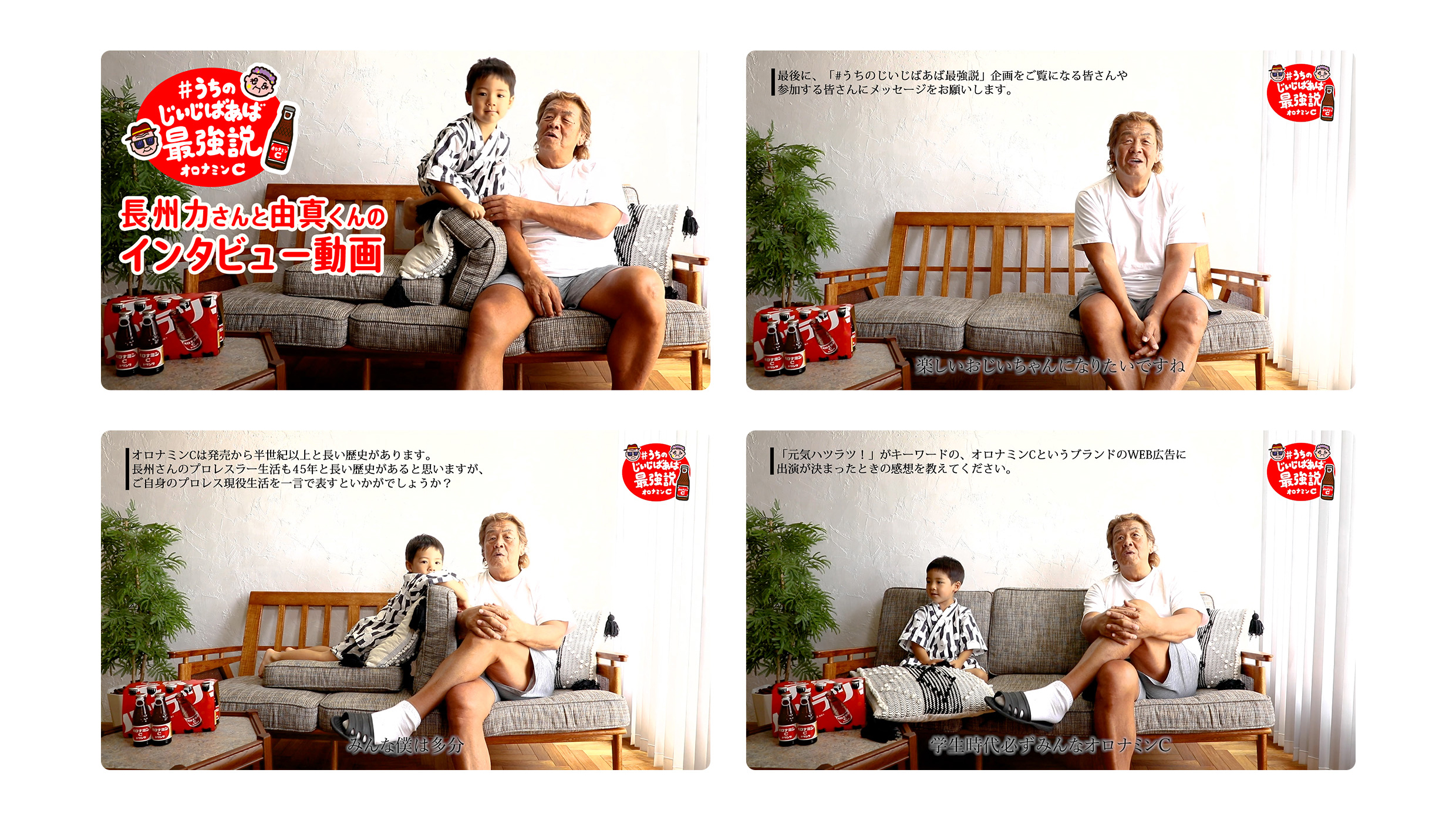 若年層が自身の祖父母をきっかけにオロナミンCを知ることも多いという認知経路から、シニア層TikTokerを起用した施策を展開。じいじ・ばあばの最強エピソード動画をTikTokにて投稿することで「元気ハツラツ!」のブランドメッセージを伝えました。また、最強じいじ代表として元プロレスラー・長州力さんが実孫・由真くんと共演する動画も話題に。D2C IDでは0次分析をもとにした企画から全体プロデュースを行いました。