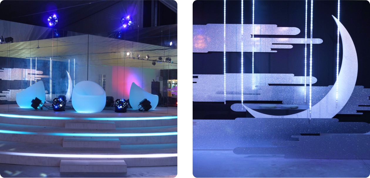 エリアごとに光、サウンド、立体音響、映像、ミスト装置がそれぞれ構成されており、見るだけではない、フィジカルに感じられる新しい体験型ナイトウォークを目指しました。