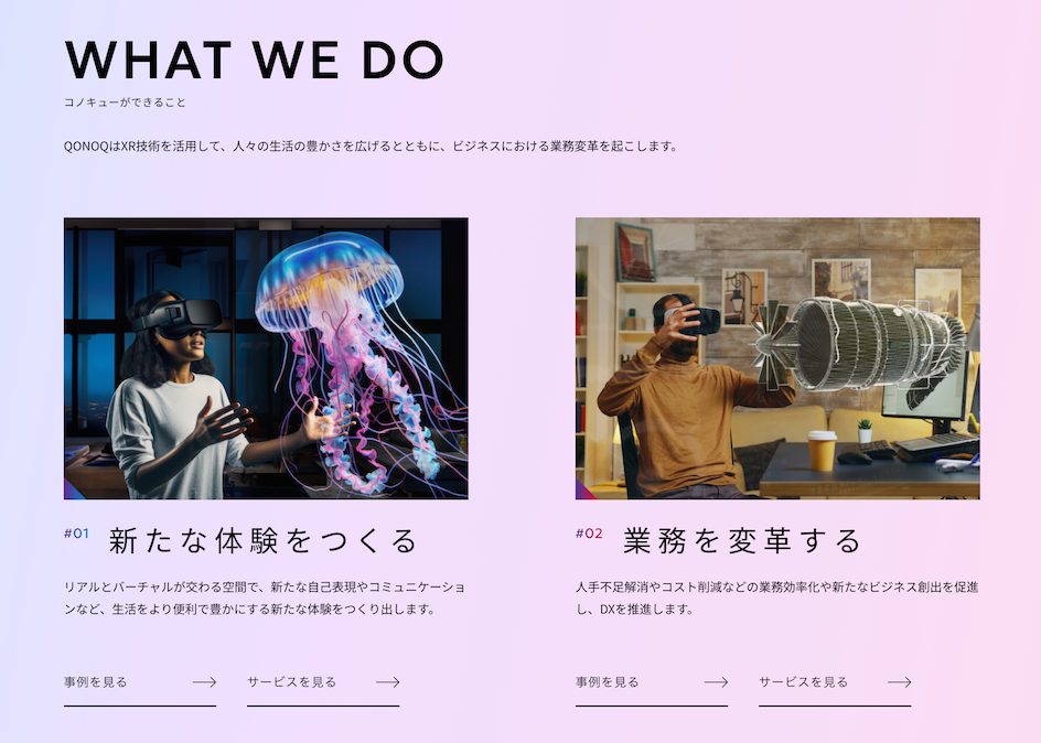 サイトの運用のし易さやユーザビリティを意識しながら、サイト来訪者にとってXRならびにコノキューについて「理解でき、発見があり、そして問い合わせやサービスを導入したくなるサイト」を目指し制作致しました。