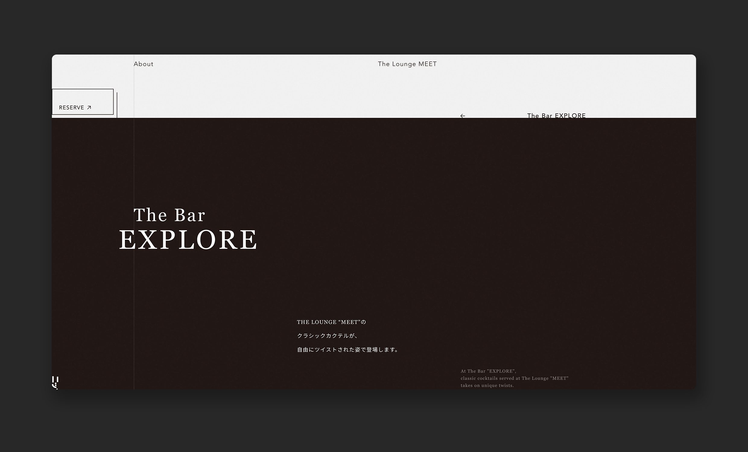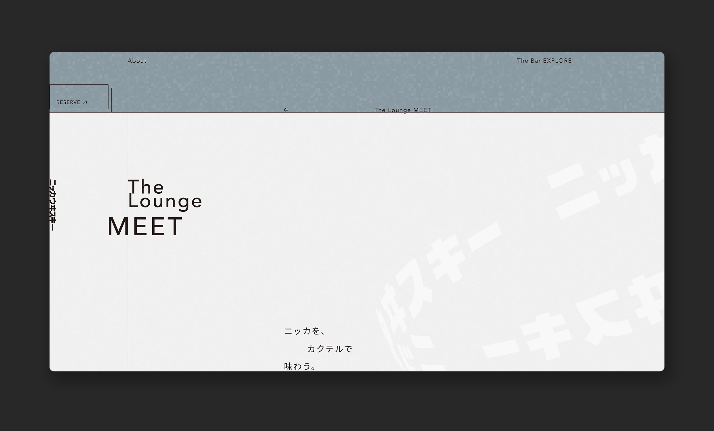 「The Lounge -MEET-」と「The Bar -EXPLORE-」という2つのバーエリアに合わせてそれぞれの表現を変えるなど、サイトの構成やデザイン、WebGLを用いたインタラクションなどを細部までこだわることで、ウェブサイトからバー来訪までの一貫したユーザー体験を演出しています。