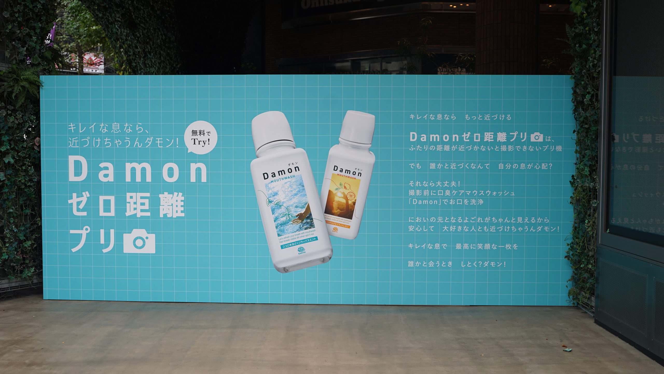 においの元のよごれが見えるマウスウォッシュ『Damon(ダモン)』 ふたりの距離が近づかないと撮影できない!?「Damon ゼロ距離プリ」 渋谷モディにて 9月21日(土)・22日(日) 限定開催