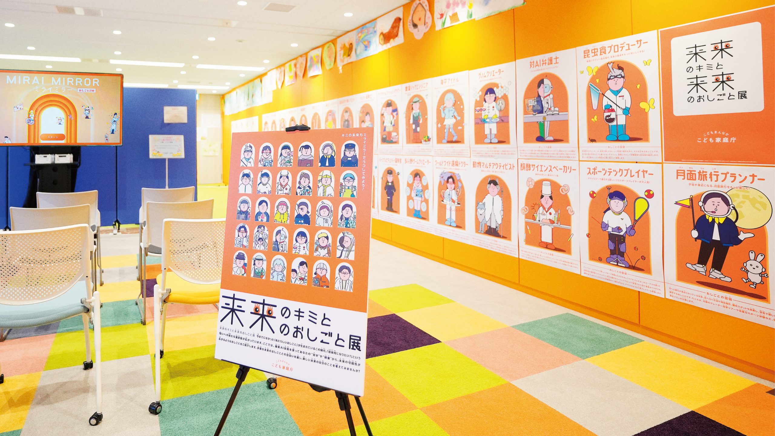 2024年度こども霞が関見学デーで実施した、こども家庭庁の特別展「未来のキミと未来のおしごと展」。時代の移り変わりが急速に進む今の時代に、こどもたちが自発的に参加し、楽しみながら将来を考えられるコンテンツの提供を目指しました。
