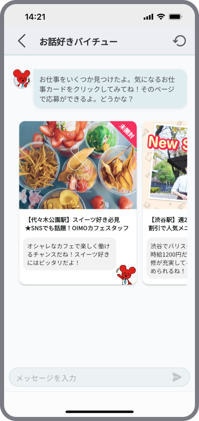 求人情報サイト「バイトル」に搭載された、生成AIを活用した日本初の対話型バイト選びサービスdip AIのデジタルプロモーションを担当し、全体ディレクション、クリエイティブ制作、広告出稿などを実施。